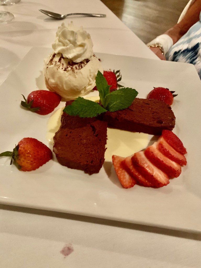 The Parfait Roessler was a delicious ice cream sundae. The Flourless Chocolate Terrine was served ala mode, a rich and decadent dessert.