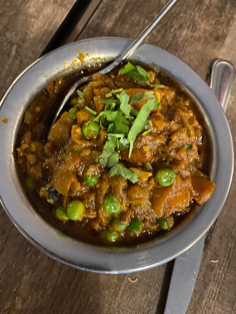 We started with the Spinach Chaat, a room temperature dish of crispy spinach, tomatoes and onions. I got so excited when it arrived that I dug right in and forgot to take a picture.