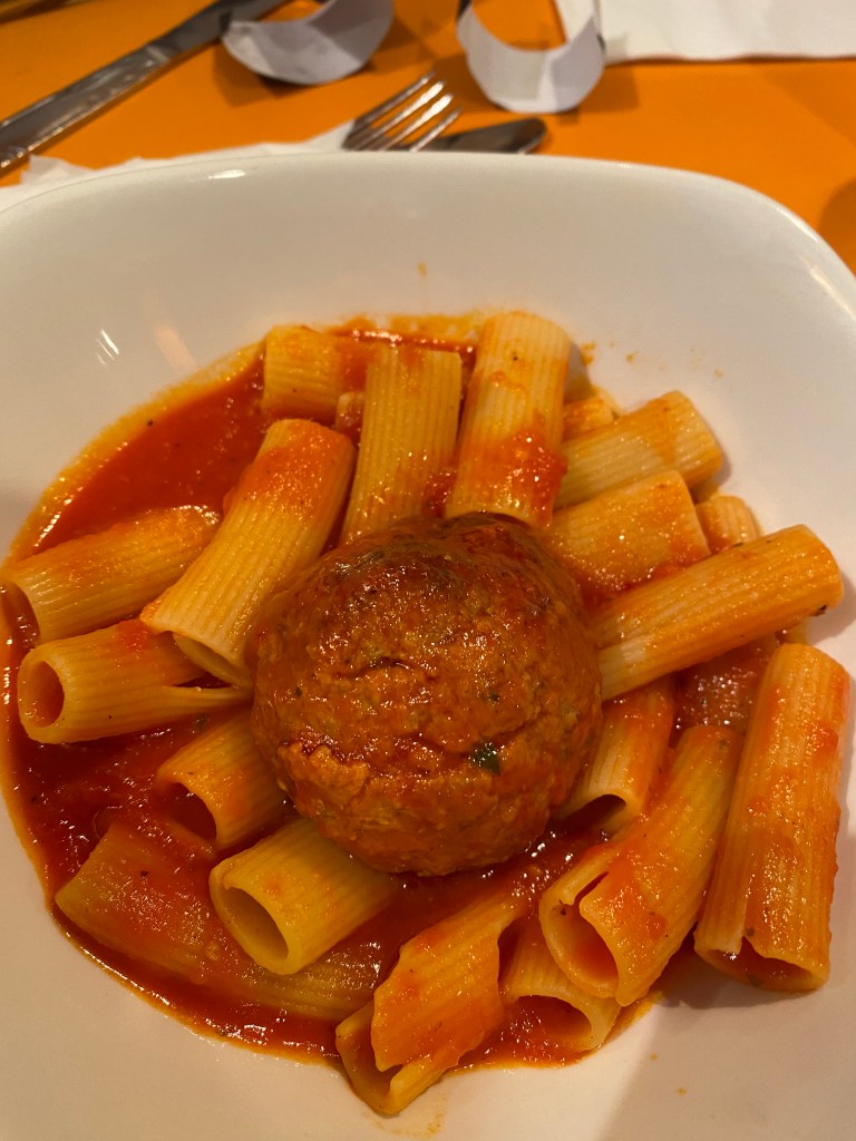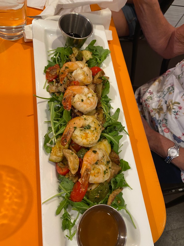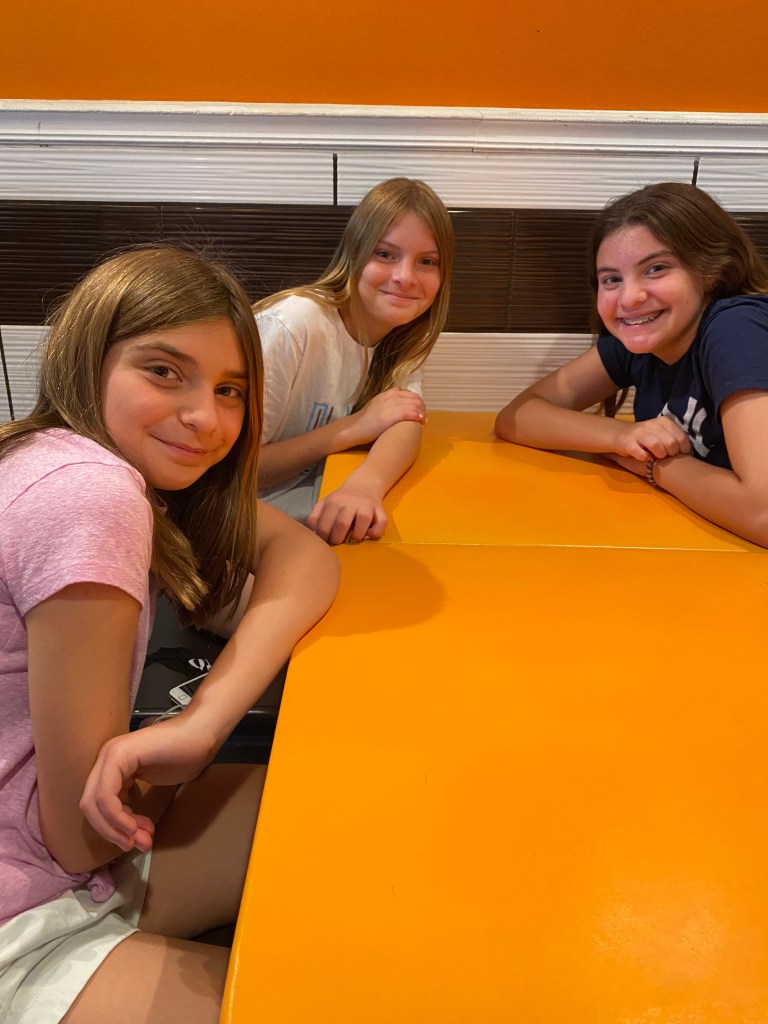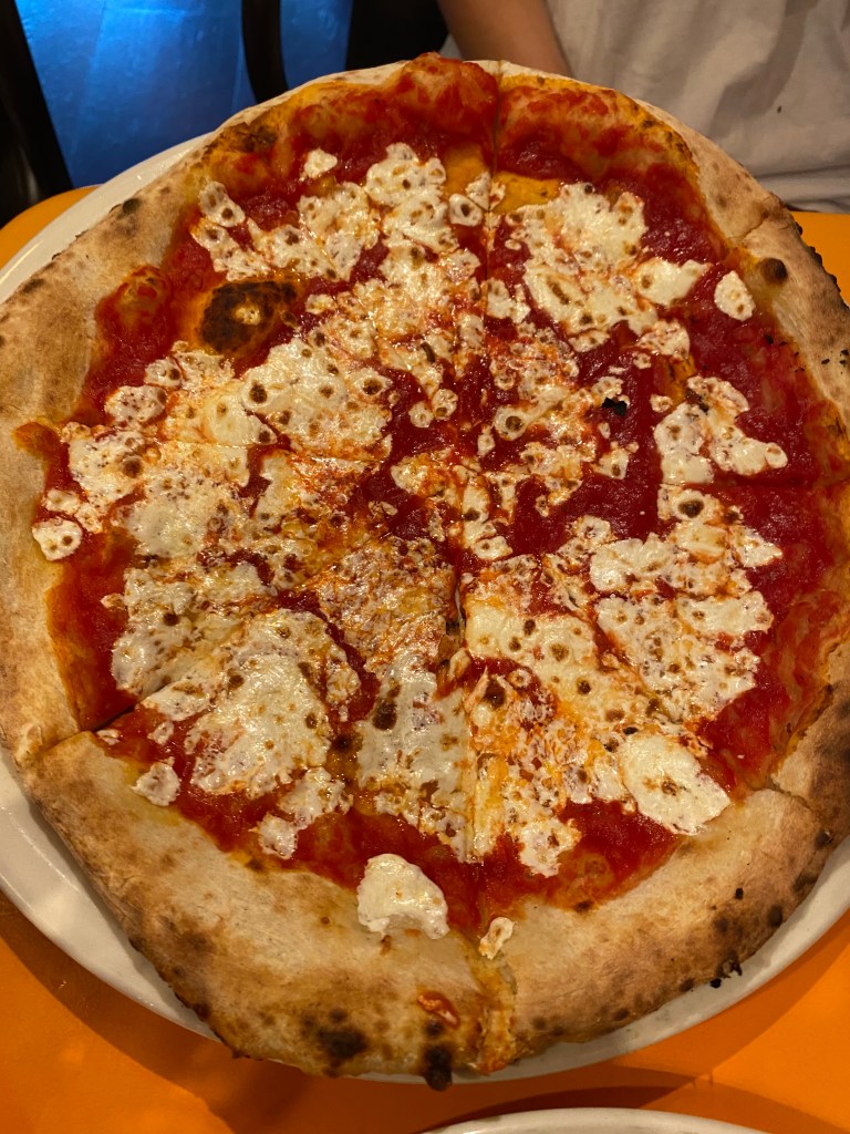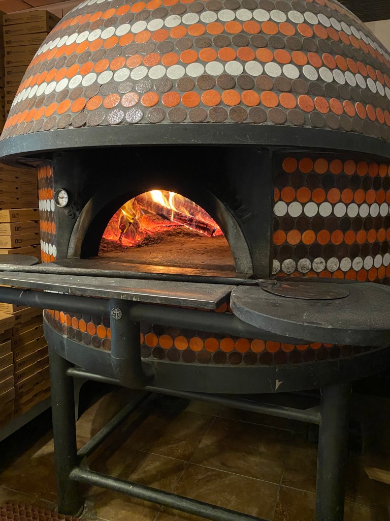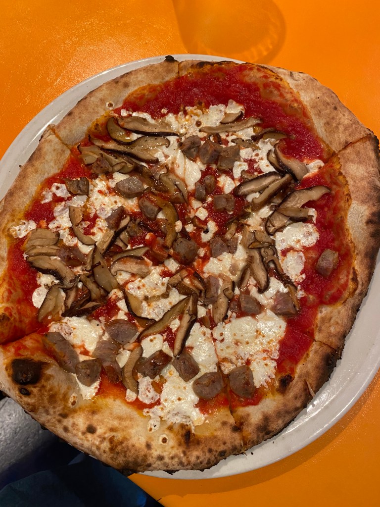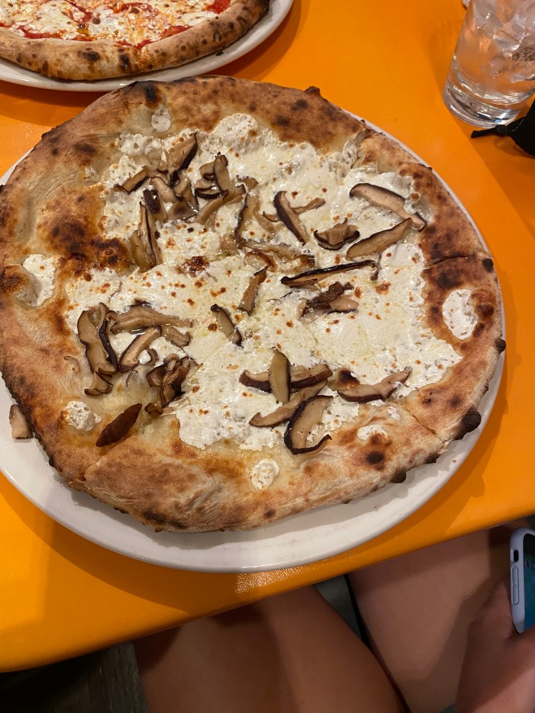 Had a delightful lunch with my three favorite granddaughters. It made my week an absolute treat and they were great company.Perhaps the restaurant couldn’t afford menus, so they use these digital scanning menus. 😉Sophia had theFungi Pizza with Tomatoes, mushrooms, cheese and Truffle Oil.Sarah, a woman of simple tastes. , had the Plain Jane Pizza. A marinara and cheese pizza.I ordered the Tartufo Pizza with Sausage, mushrooms, tomatoes, cheese and truffle oil.Emma felt more like pasta than pizza, so she ordered a child’s portion of Rigatoni with a meatball. Barb ordered La Grill, shrimp, tomatoes, arugula and good dressing on the side.The pizzas literally came out in 2 minutes because they have a real wood-fired oven. Just like they use in Italy.