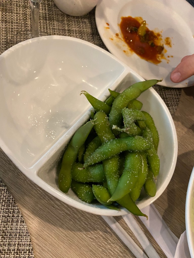 These Edamame would have lasted 20 seconds had our grandchildren been at the table. We consumed them in a leisurely 3 minutes.