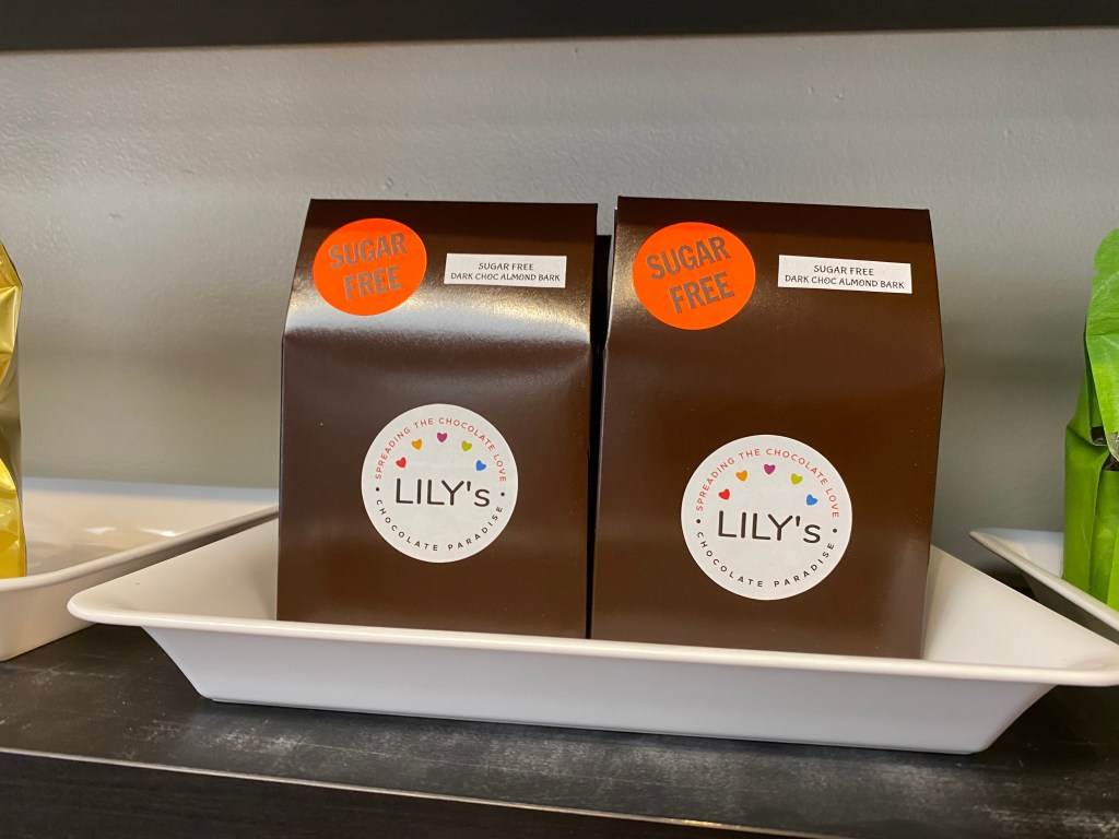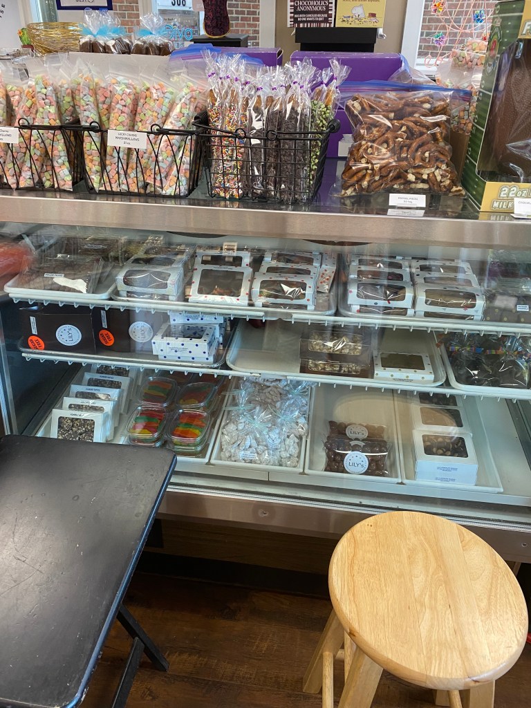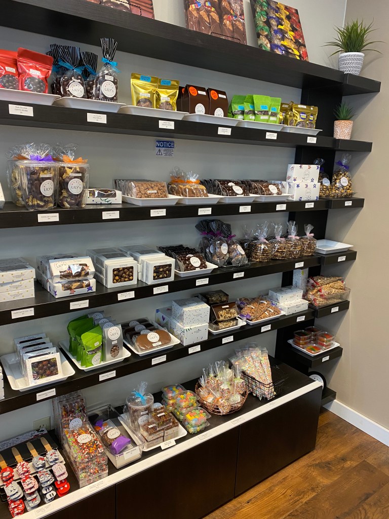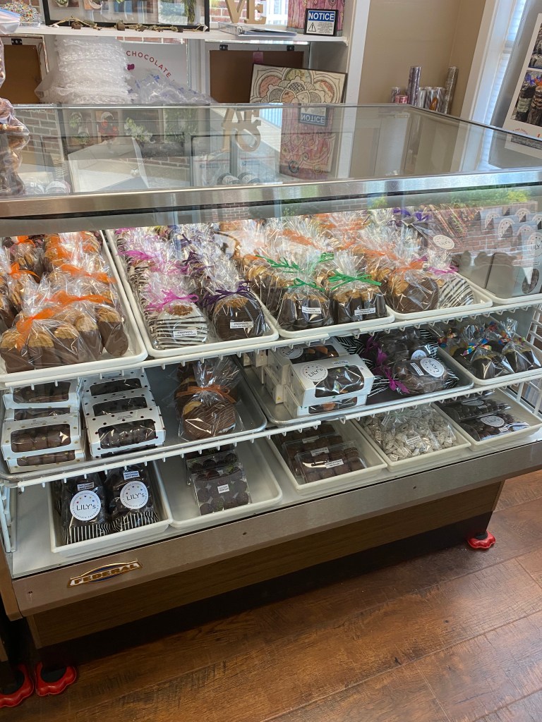 This is Lily. To speak with her you’d never guess she spent a whole career working in the world of lawyers and legal things. She is a very pleasant personable woman, passionate about making chocolates. The career change was perfect for her and has made her a happier person, excited to go to work each day.The diverse selection of chocolate goodiesis breathtaking. For me, it’s like being a kid in a candy shop. Ha ha.I especially appreciate her selection of sugar-free dark chocolate. Perfect for diabetics and lower carb eaters.These are my favorites!