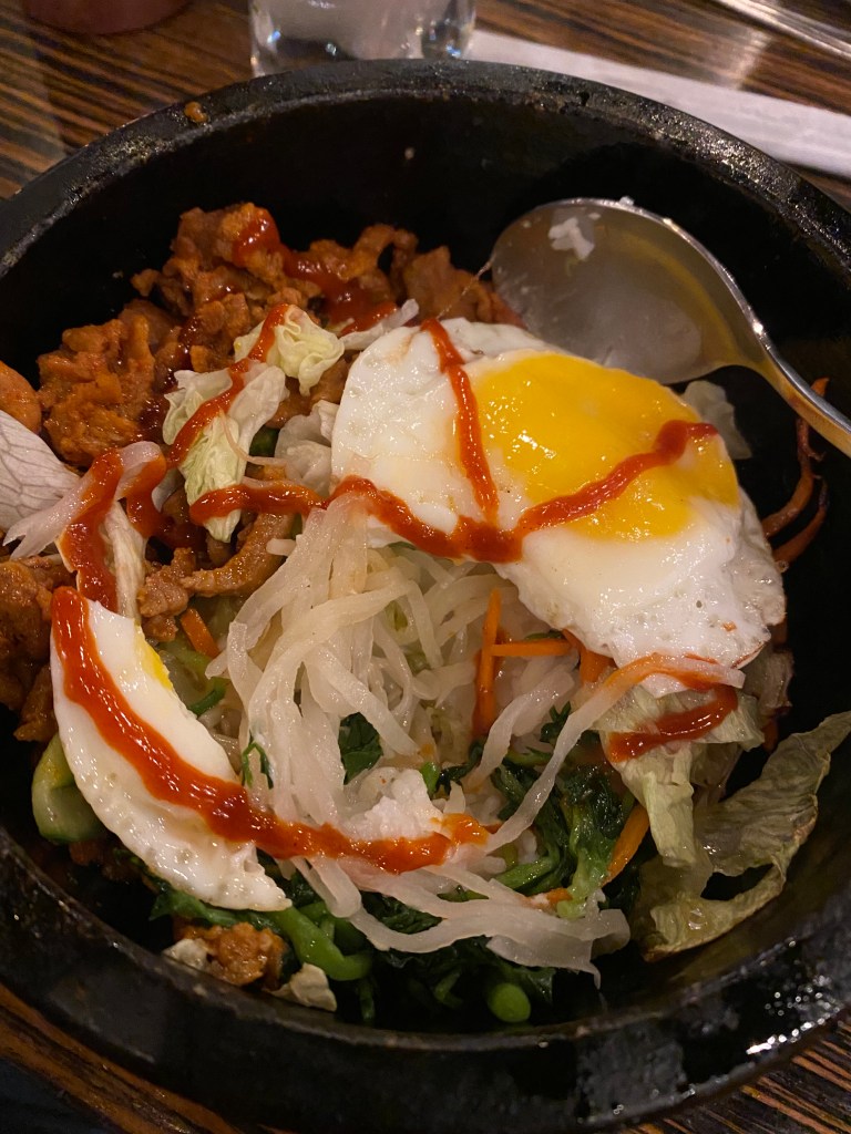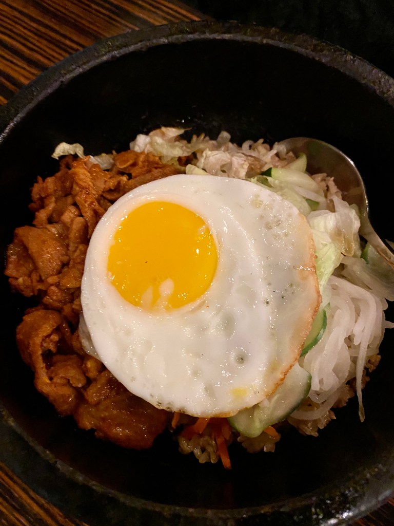 Lots of healthy veggies and yummy cellaphane noodle hidden in the Bibimbop.