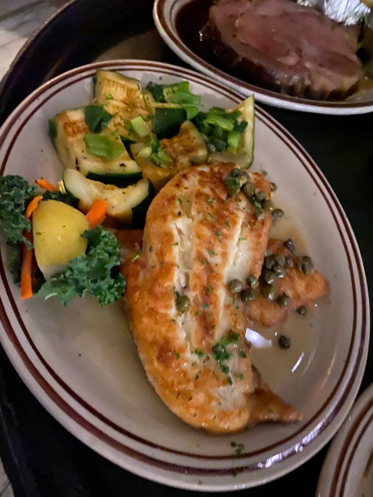 Barb ordered the Snapper with Lemon and Capers. They offer a few other sauces, but this is her favorite.