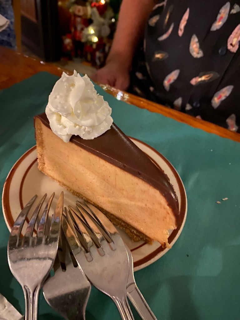 Dave ordered a slice of Peanut Butter Pie for us all to share. All of their desserts are brilliant. When we bring our grandson, Jonah, we are required to order two slices of this pie for him so that he can have a slice the next day. I am partial to their Key Lime Pie.