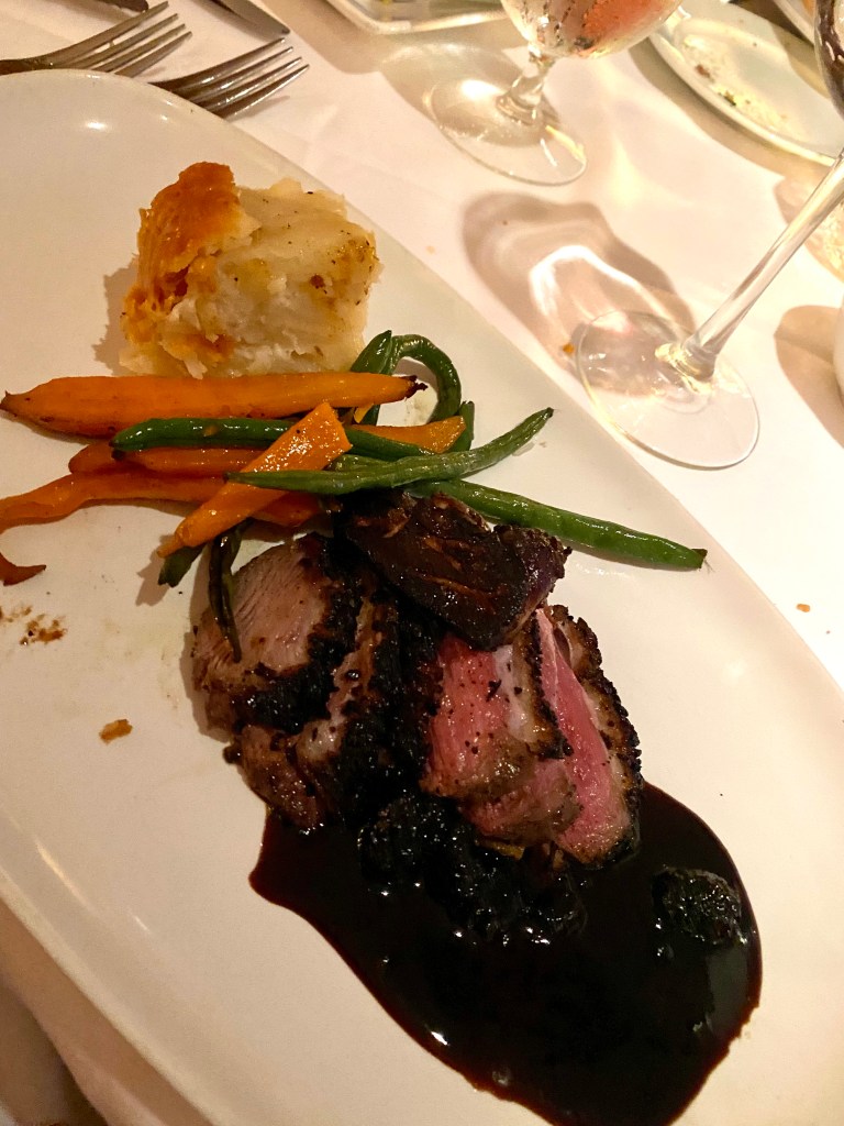 Our friends Ken and Brynna turned us onto Alexander’s two years ago. Ken is hyperaware of my love for duck and byobs. He said they have the best duck dish in Naples. As far as I’m concerned, he is still correct. ( But there are still plenty more places to check out.) This chef has been cooking here for several years and has a sizable and loyal following. I’d classify his cuisine as European or Continental. The staff is always efficient, knowledgeable and informative. I feel that their outdoor courtyard is one of the best spots in town to dine al fresco.