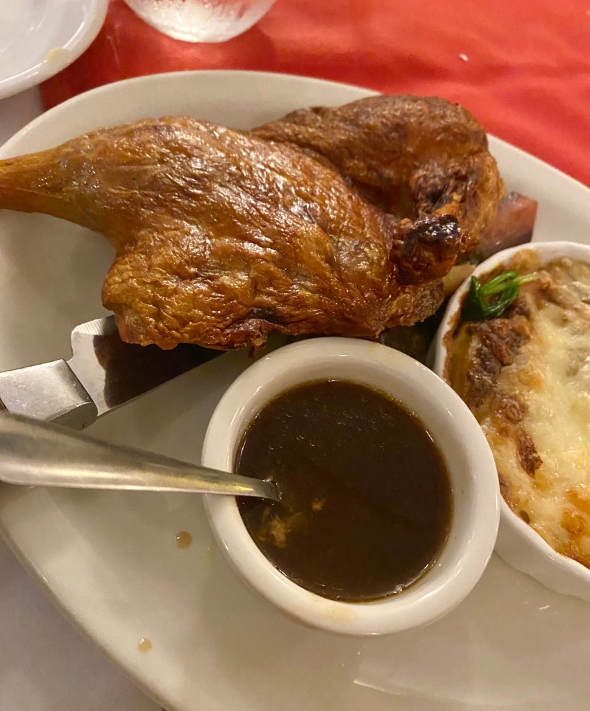 I enjoyed my half duck, crispy, as I like it and served with the yummy Potatoes au Gratin. I can’t get enough of them.