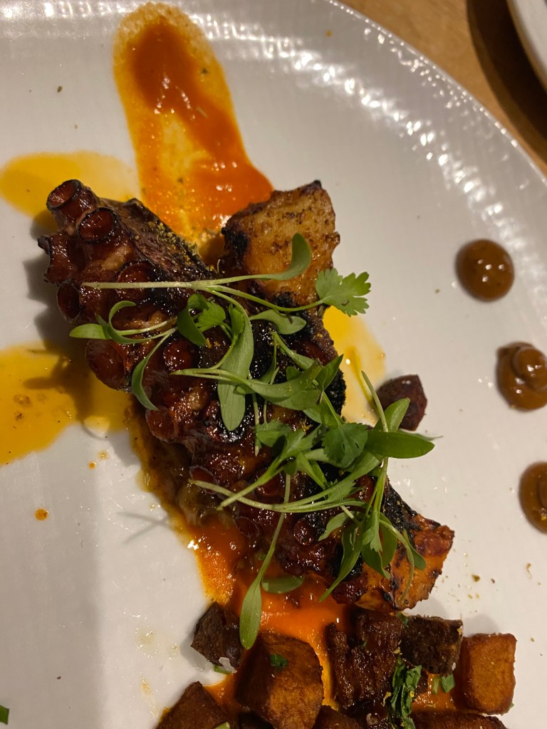 Once again we were too full to order dessert. This restaurant had a delightful ambiance. Our server was charming and informative. The menu had plenty of additional dishes for me to check out on future trips. I’m looking forward to returning and advise you to check it out.