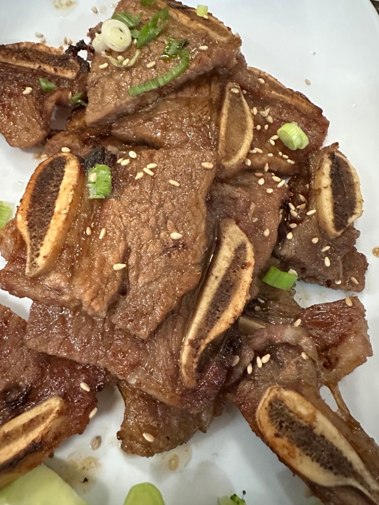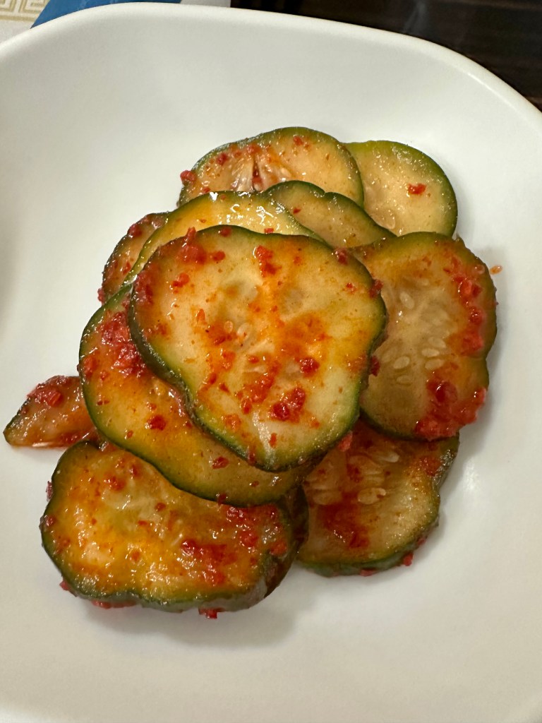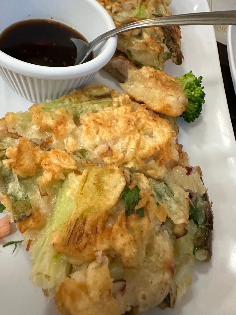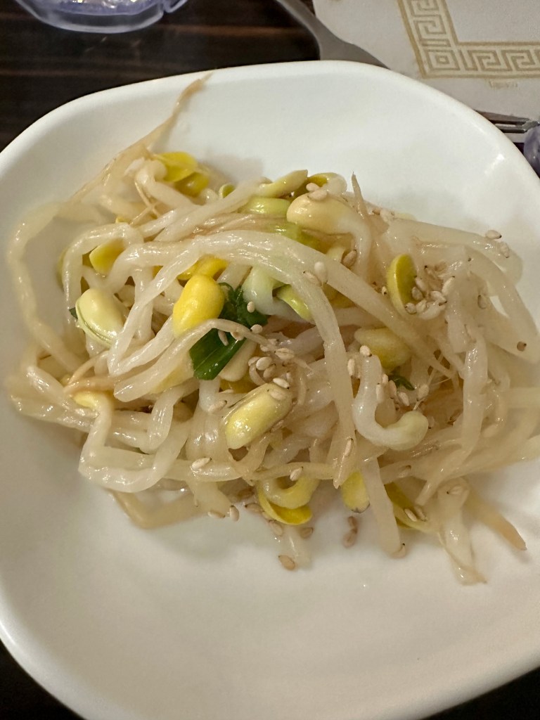 Rick and I, the birthday boys.Barb and Sharon, the sweetest sisters ever.The best thing about dining with our family is that we share everything. This is an order of Korean Chicken wings. They are double fried and marinated with a garlic sauce. We could have had them sweeter or spicier, but Rick would not have liked them. This dish was enjoyed by all of us.I’m a huge fan of Seafood and Scallion Pancakes. They most commonly show up in Korean restaurants, but can appear on any Asian menu. These were very tasty and we all liked them. I’ve had them a little thinner in other places, which I’ve preferred, but these were the best I’ve had locally.Beef short ribs, know as Kalbi, are probably the favorite of every Korean person I’ve ever dined with. They are cut thinner and perpendicular to the usual direction we are used to. They are always tender and nicely marinated. These were very good. Rick, our beverage aficionado, enjoyed his Diet Coke and approved the vintage. He is a world class designated driver.This Pinot Noir was a bottle I picked up on Wine Slash. It’s a website that offers good buys and interesting picks. It was about $19 and tasted great. Matched well with all of our meals.Korean restaurants commonly serve anywhere from 3 to 6 small tastings of savory items that I liken to “amuse bouches”. This little plate had bean sprouts gently coated with a nice sauce.This small plate had Zucchini chips marinated in a spicy Kim Chee type dressing. Spicy and garlicky. Wonderful.This little dish had fishcake which tasted neither fishy nor cakey. I’ve had it many times. It was slightly pickled. Dont let the name put you off. It’s got a nice flavor and consistency.Rick and Sharon ordered the Drunken Noodlesv with Chicken and mixed vegetables. That both enjoyed it. Rick was a bit put off when he discovered that he was also eating some pieces of tofu. Such is life. Barb ordered the Hot Stone Bowl Bibimbap with brown rice. She enjoyed it. I loved the Spicy Pan Fried Pork with mixed veggies. The pork was perfectly spicy and it came with a bowl of white rice. I’m accustomed to eating this dish with romaine lettuce leaves and wrapping it up into little packets with rice and spicy sauce. The hostess said she’d do that for me next time we come.