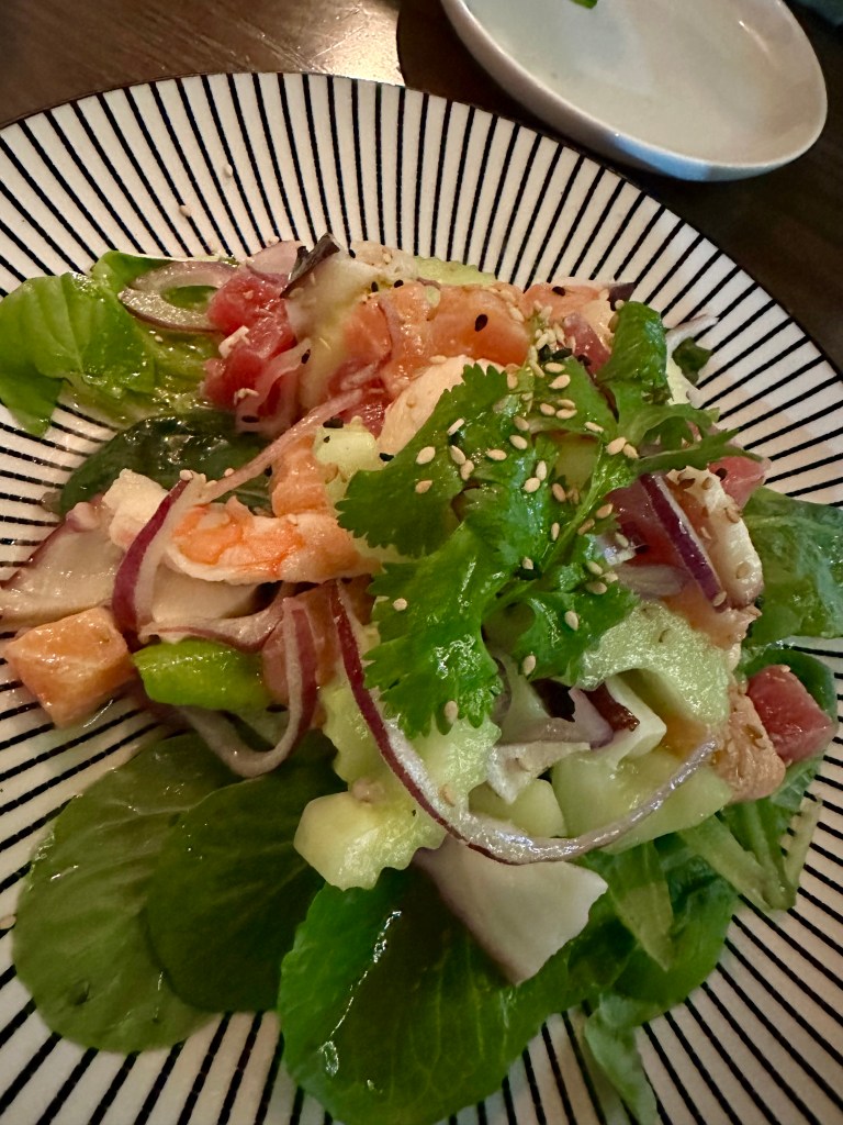 We started with an appetizer of Tuna Tataki that I forgot to photograph. That’s a shame because it was attractive as well as delicious.