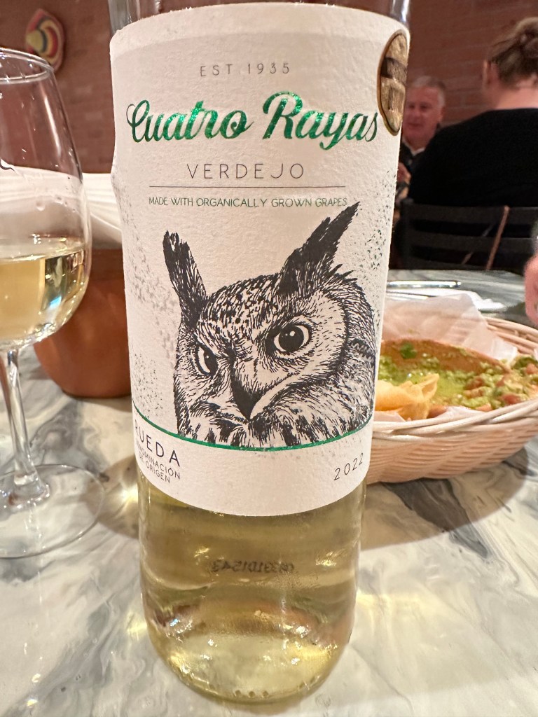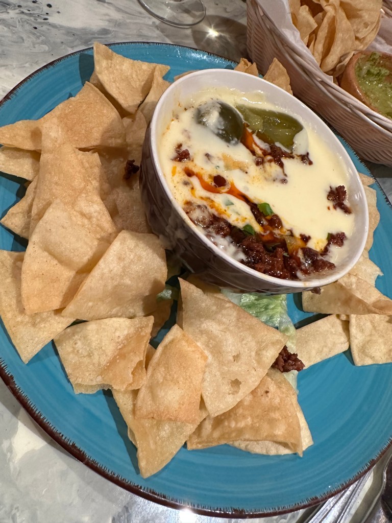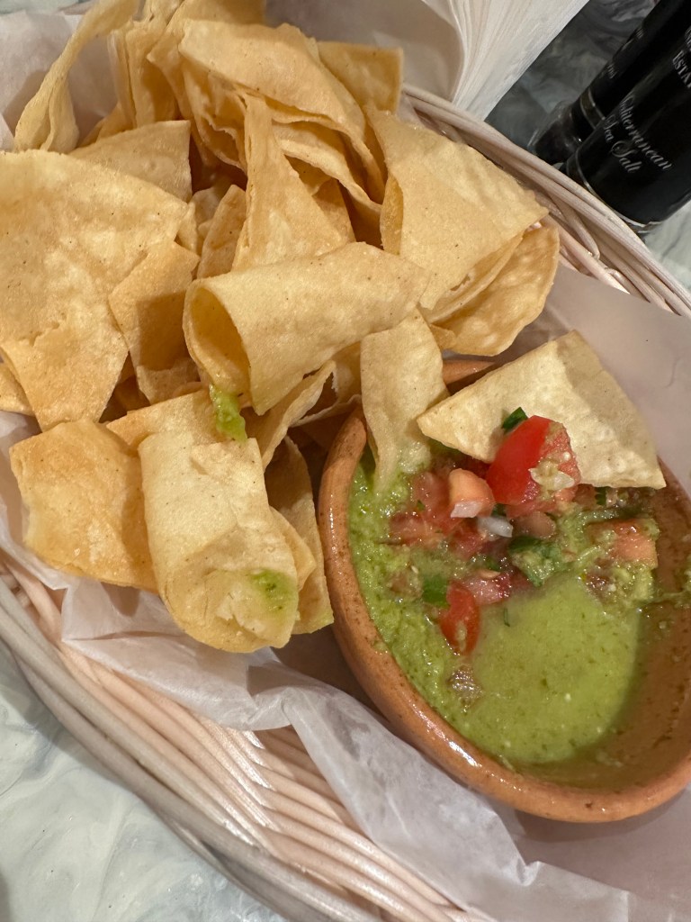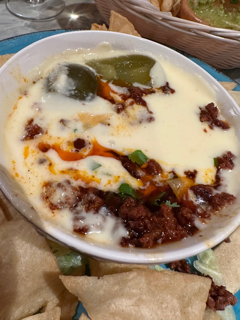 They started us out with some warm chips and green salsa. A tasty “amuse-bouche “.I had called to ask if they had a corkage fee. $15… not bad for a place that has a wine and beer license. This Spanish white goes perfectly with rich or spicy foods. Reuda wines are moderately light, have a subtle amount of fruit, and just enough acid to balance out the richness of cheesy dishes. Being a cheesy guy it worked perfectly for me that night.