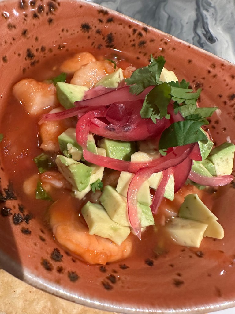 Looks like fresh ingredients and prepared carefully. Ceviche looked a little atypical with whole shrimp and avocado chunks.