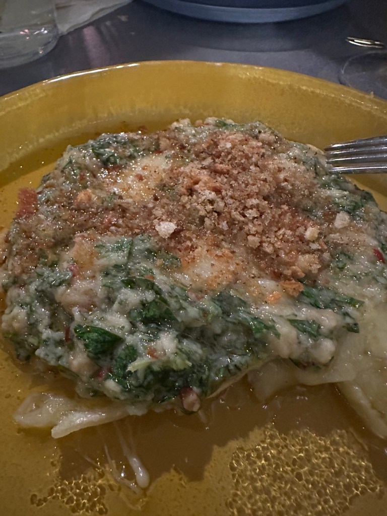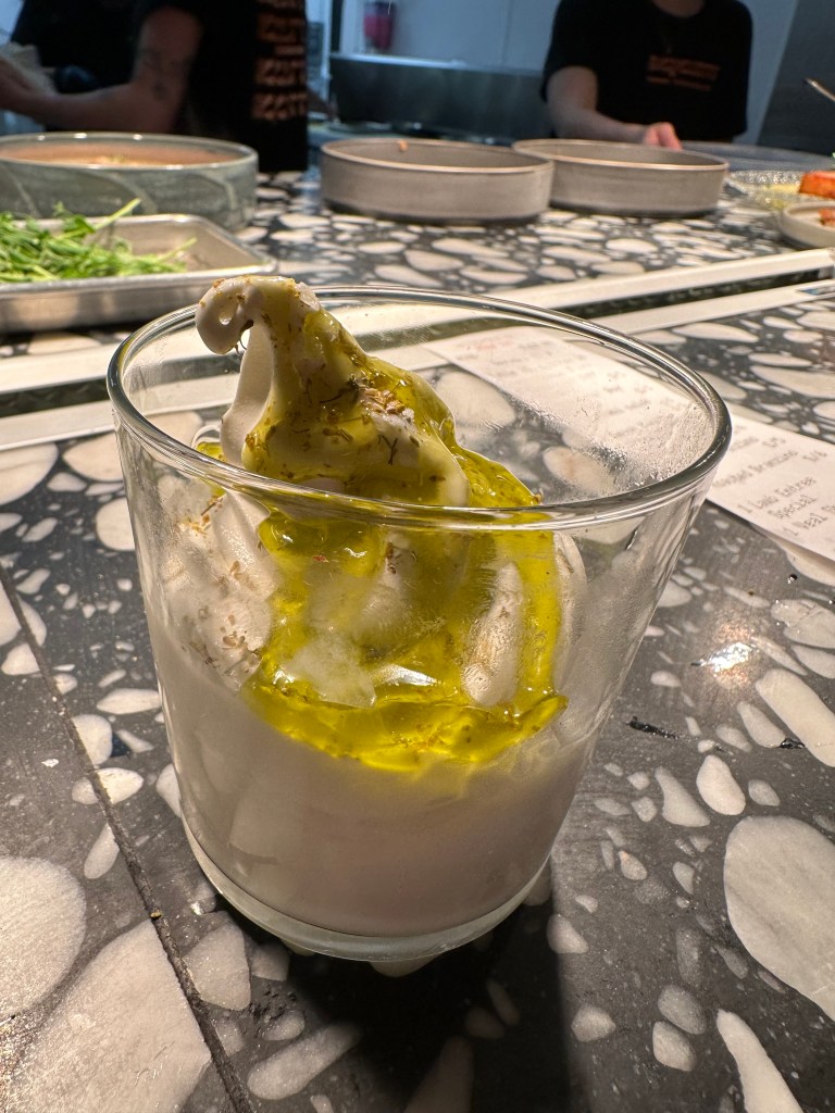 This Chinon is a Cabernet Franc grown in the Loire valley in an adorable town called (get this) Chinon. The grape is most often used to blend with Cabernet Sauvignon, but has been made unblended in Chinon forever. It is now being produced alone in California and the Finger Lakes of New York.This dessert was a home made soft serve ice cream adorned with a flavored olive oil which made it unusually lush.Our server, Candice, was a real pleasure. She gave us good guidance through the menu and was very nice to chat with.