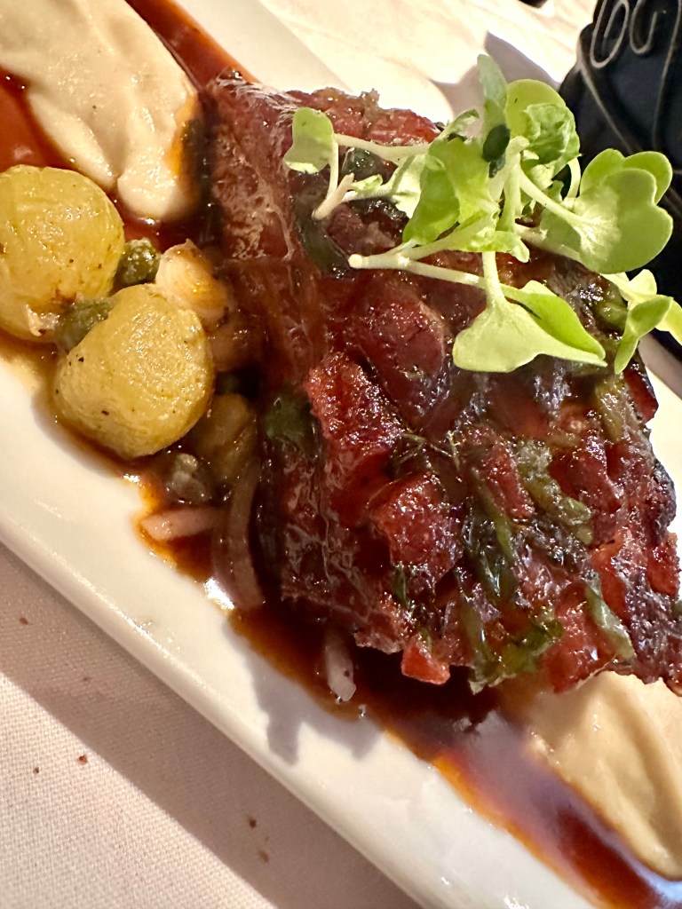 I requested something that would go to my heart and calcify. So I had the Braised Berkshire Pork Belly with Fennel Soubise, Roasted grapes, Caper compote and veal jus. This was a very serious pork belly, so much meat and very little fat. Easily the best pork belly I’ve ever had, and I’ve had a lot.