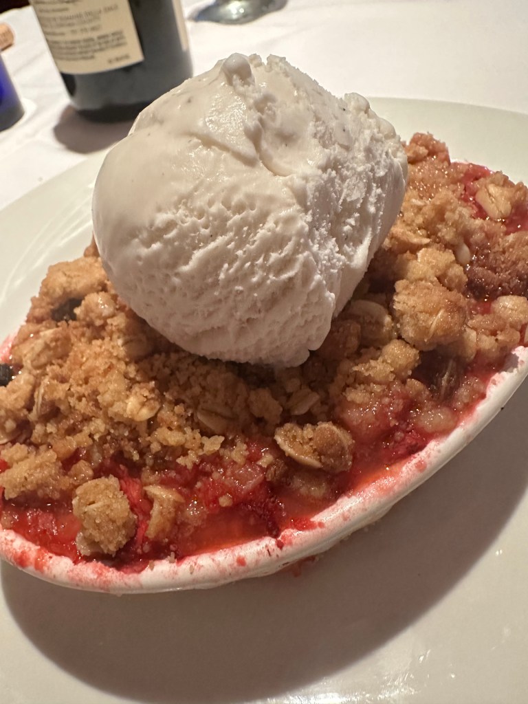 I saved room for dessert and was thrilled that I did. This Roasted Strawberry Crisp with oatmeal Struesel and vanilla ice cream was an absolute home run!