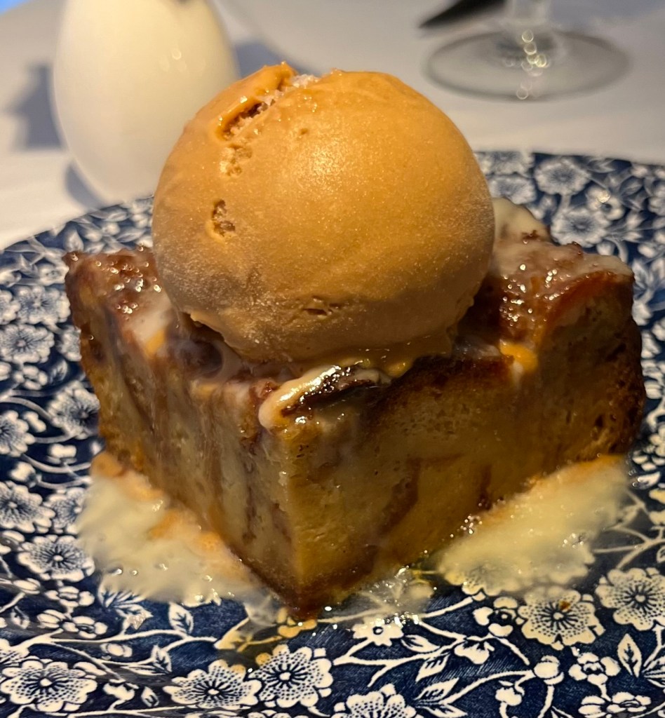 A brief consultation with our server resulted in my choosing the Bread Pudding with Salted Caramel ice cream. This was really a no-brainer considering my affection for bread puddings. This dessert was rich and perfectly dense. The ice cream topping was a perfect implement.