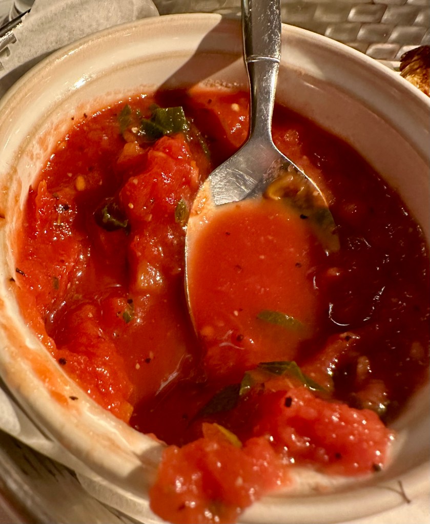 The sauce was loaded with chunks of tomatoes and fresh herbs. Someone had hit the sauce before I took this photo.