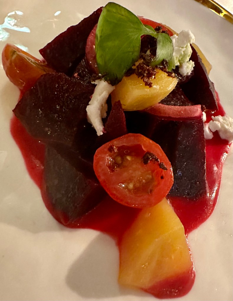 Barb and I chose two starters. One was this beet salad which they graciously split into two portions. I’m a big fan of fresh beets along with goat cheese and this dish really tickled my fancy.