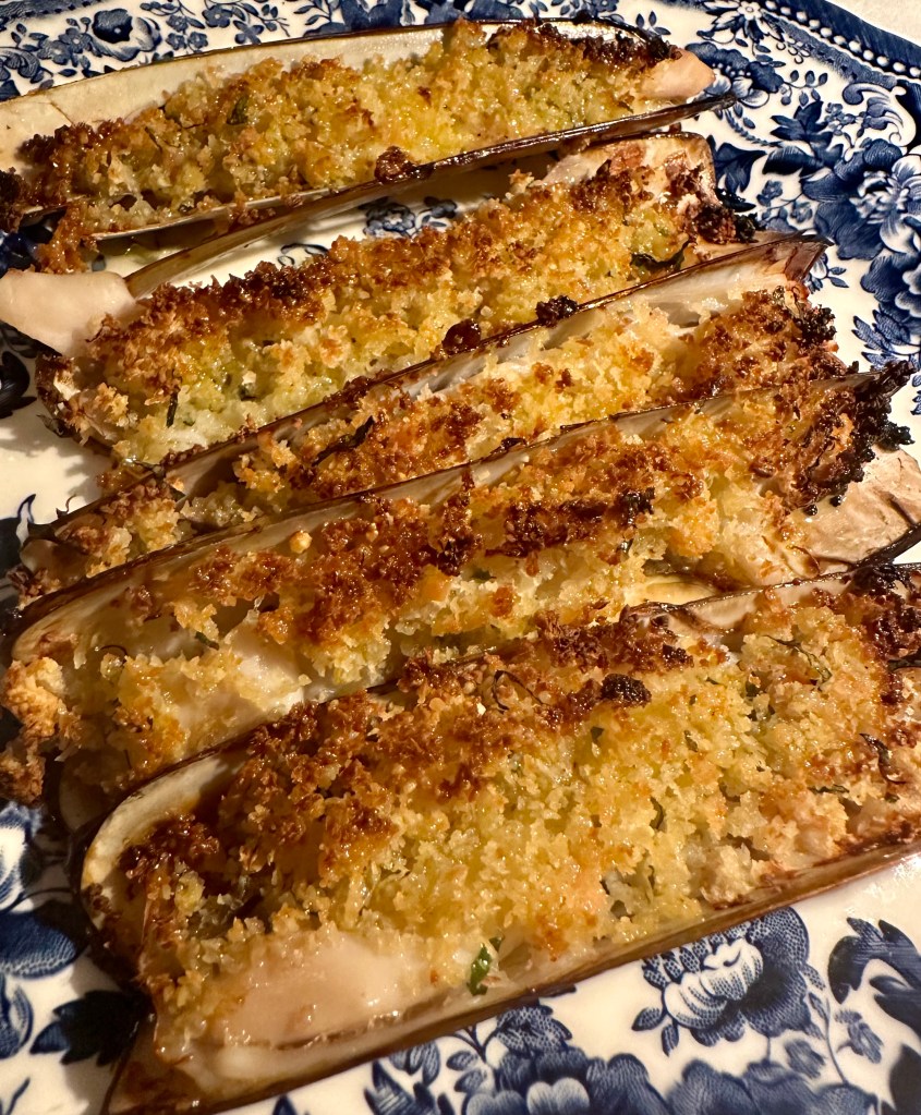 It seems that no one ever serves razor clams. When I saw it on the menu I flipped out. They coated them lightly with bread crumbs and baked them to a nice crispy finish. Razor clams are a super treat, whether served raw or cooked. Five to an order and I got three. I have a generous wife.